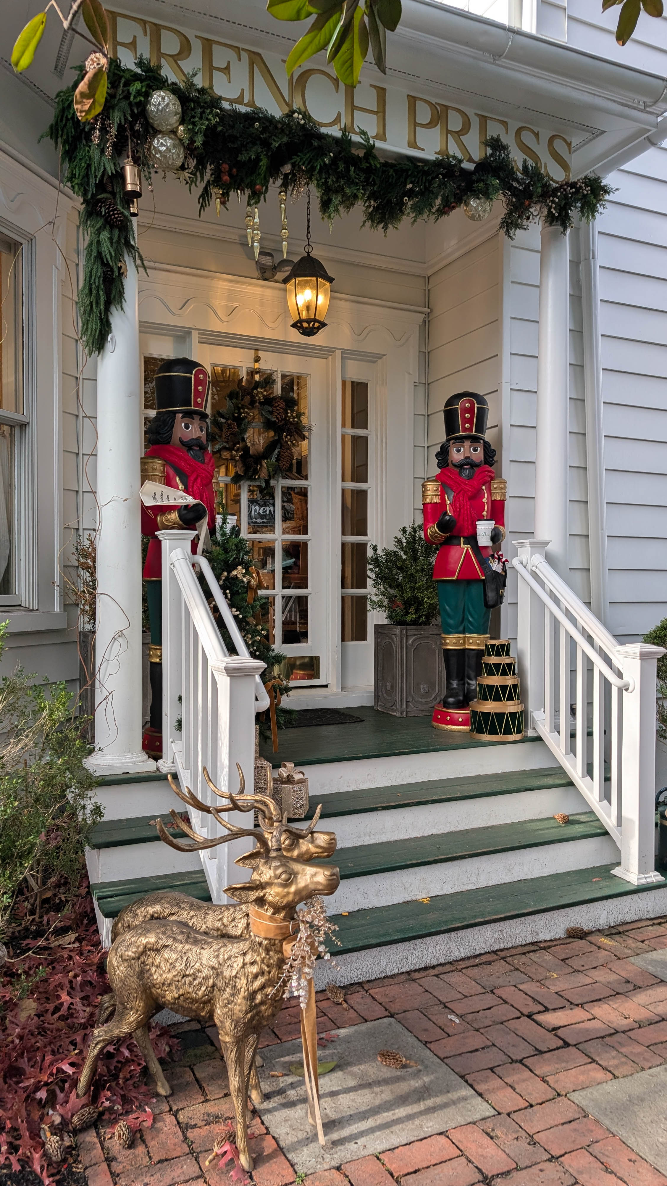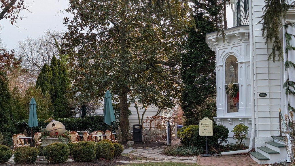 The French Press’ outdoor seating area enchants coffee lovers as if it were a coffee lover’s Garden of Eden.Decor changes with the seasons allowing a simple coffee run to be transformed into a holiday experience.